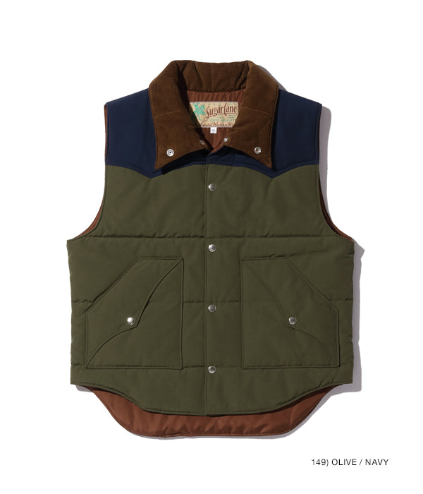 Stay warm in style with this striking Sugar Cane T/C Padding Vest. It features a unique shape and pocket flaps around the collar for improved protection against the cold. The outer fabric is a high density, durable blend of polyester and cotton, while the inner lining is smooth and lightweight. It boasts a cozy corduroy collar, lightweight padding, and an eye-catching color palette inspired by the 70s. So don't hesitate, stay cozy and stylish all winter.