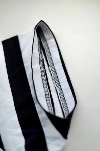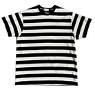 Horizontal stripes have a long-standing history in fashion, originating from medieval Europe for its bold and captivating appeal. The modern tee version has a rich history, first worn by French sailors in the 1800s and then adopted by European designers like Coco Chanel before becoming a favorite of American casual wear, they including with bikers.